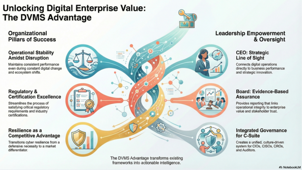 For the CEO, the DVMS provides a clear line of sight between digital operations, business performance, and strategic outcomes—turning governance and resilience into enablers of growth and innovation rather than cost centers.