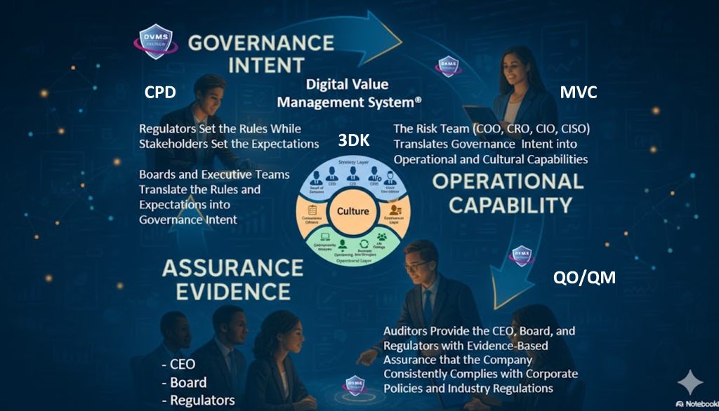 For the CIO, CRO, CISO, and Auditors, the DVMS provides a unified approach to organizational digital value management, operational resilience, and regulatory compliance.