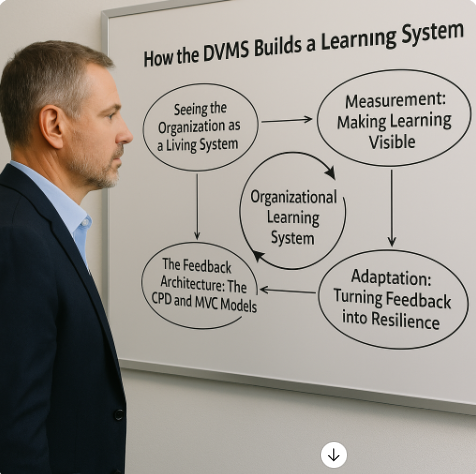 The NIST CSF provides a structured foundation for managing cybersecurity risk. It defines six core functions—Govern, Identify, Protect, Detect, Respond, and Recover—that serve as pillars for improving an organization’s cybersecurity posture. However, the NIST CSF is not a how-to guide; it outlines what needs to be done but leaves much of the implementation detail open to interpretation. This is where the DVMS enters the picture. The DVMS acts as a systems model overlay, bringing to life the conceptual power of the NIST CSF by operationalizing its components through governance, cultural integration, and organizational capability development.