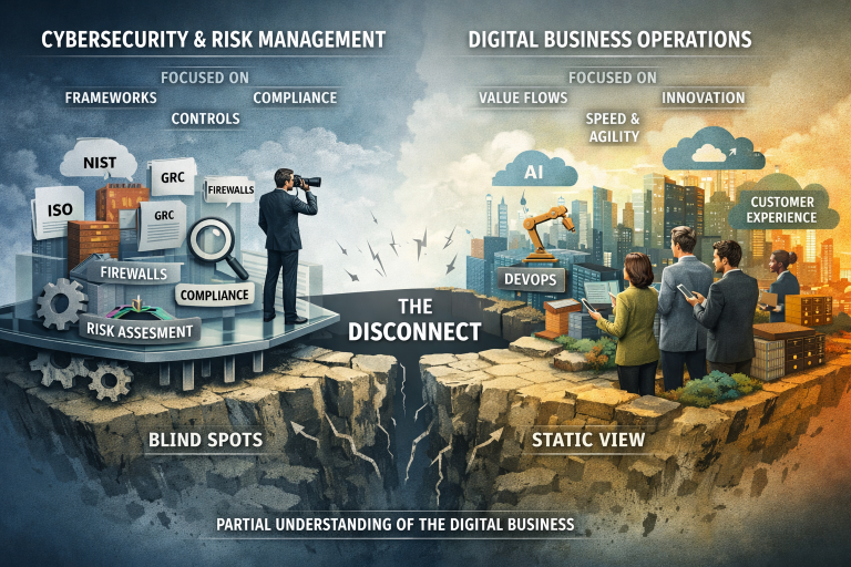 This lack of understanding is not due to incompetence or negligence. Instead, it is a structural and conceptual problem rooted in how cybersecurity and risk management have evolved as disciplines—separate from how digital value is created, delivered, and sustained.
