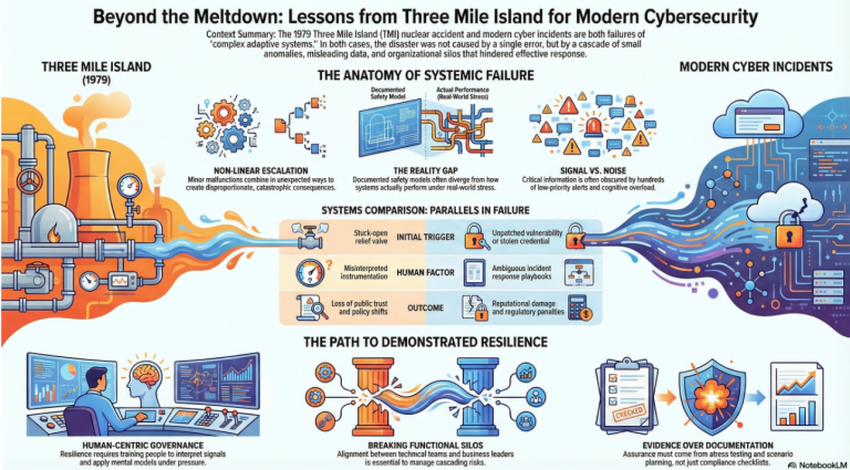 At first glance, the 1979 Three Mile Island (TMI) nuclear accident and modern cybersecurity incidents appear to belong to entirely different domains. One involved a partial nuclear reactor meltdown in Pennsylvania; the other typically involves malicious code, stolen data, or disrupted digital services. Yet beneath the surface, both reflect systemic failures in complex, tightly coupled socio-technical systems. Each reveals how technology, human decision-making, organizational design, and governance interact under stress. When examined through the lens of resilience and assurance, Three Mile Island and major cybersecurity incidents share striking commonalities that offer enduring lessons for digital enterprises.